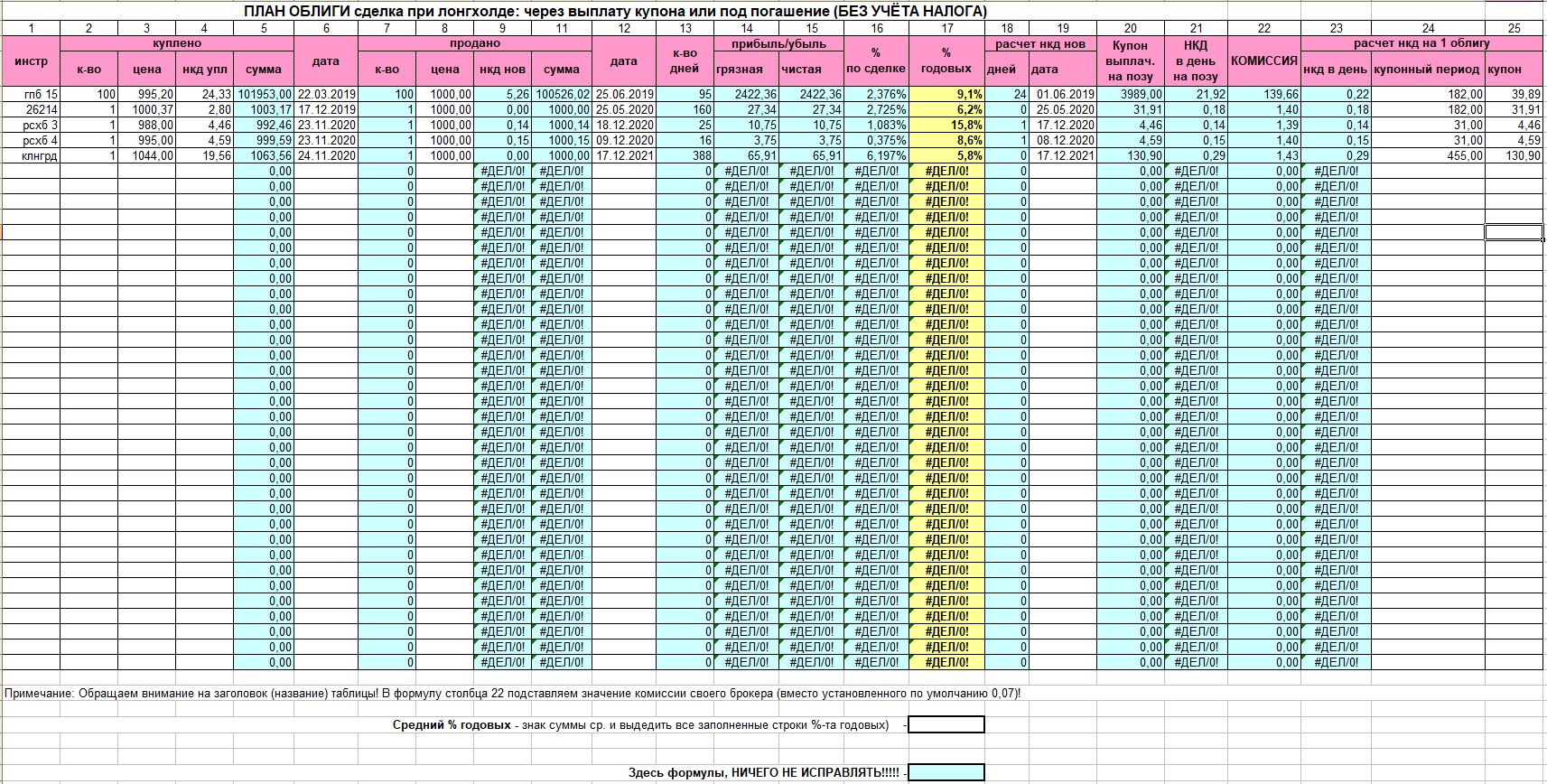 Однако наш калькулятор не преследует цель конкурировать с уже существующими табличками, он создан для спекулянтов, точнее для того, чтобы наглядно показать преимущество спекуляций перед холдом. Мы увидим, откуда в облигациях берутся 20% годовых, даже при купоне 6%.